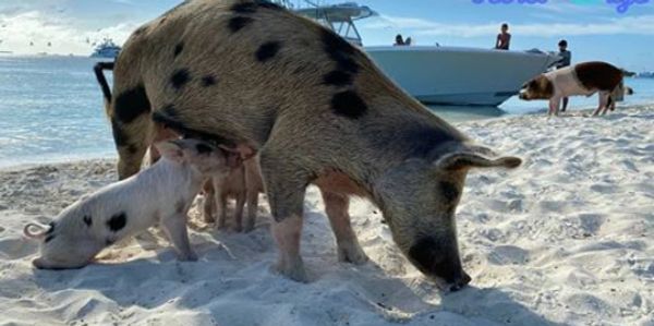Swim with and feed the swimming pigs at Meeks Patch, Eleuthera